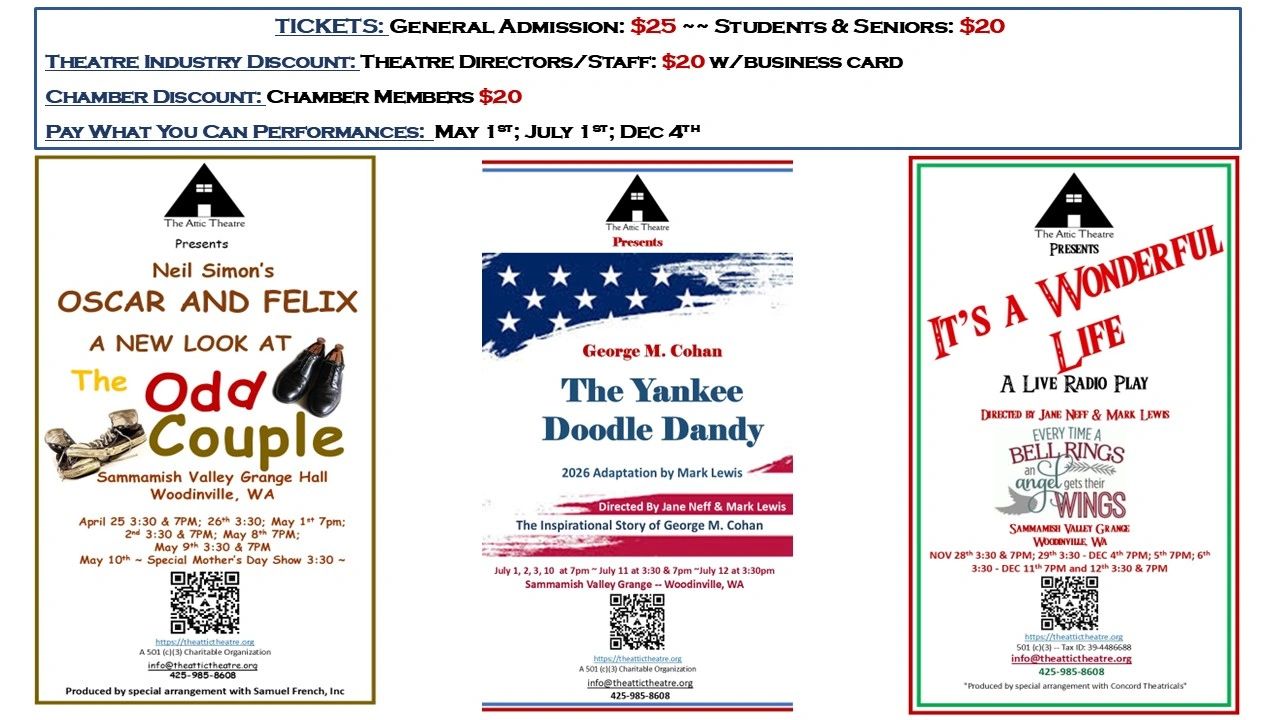 425-985-8608 info@theattictheatre.org 501(c)(3) Charitable Organization